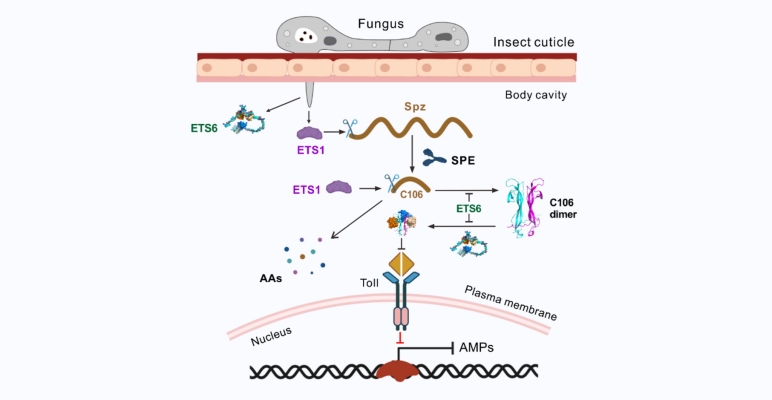 王成树研究组揭示病原真菌双重靶向关键免疫因子而广谱杀虫的作用机制