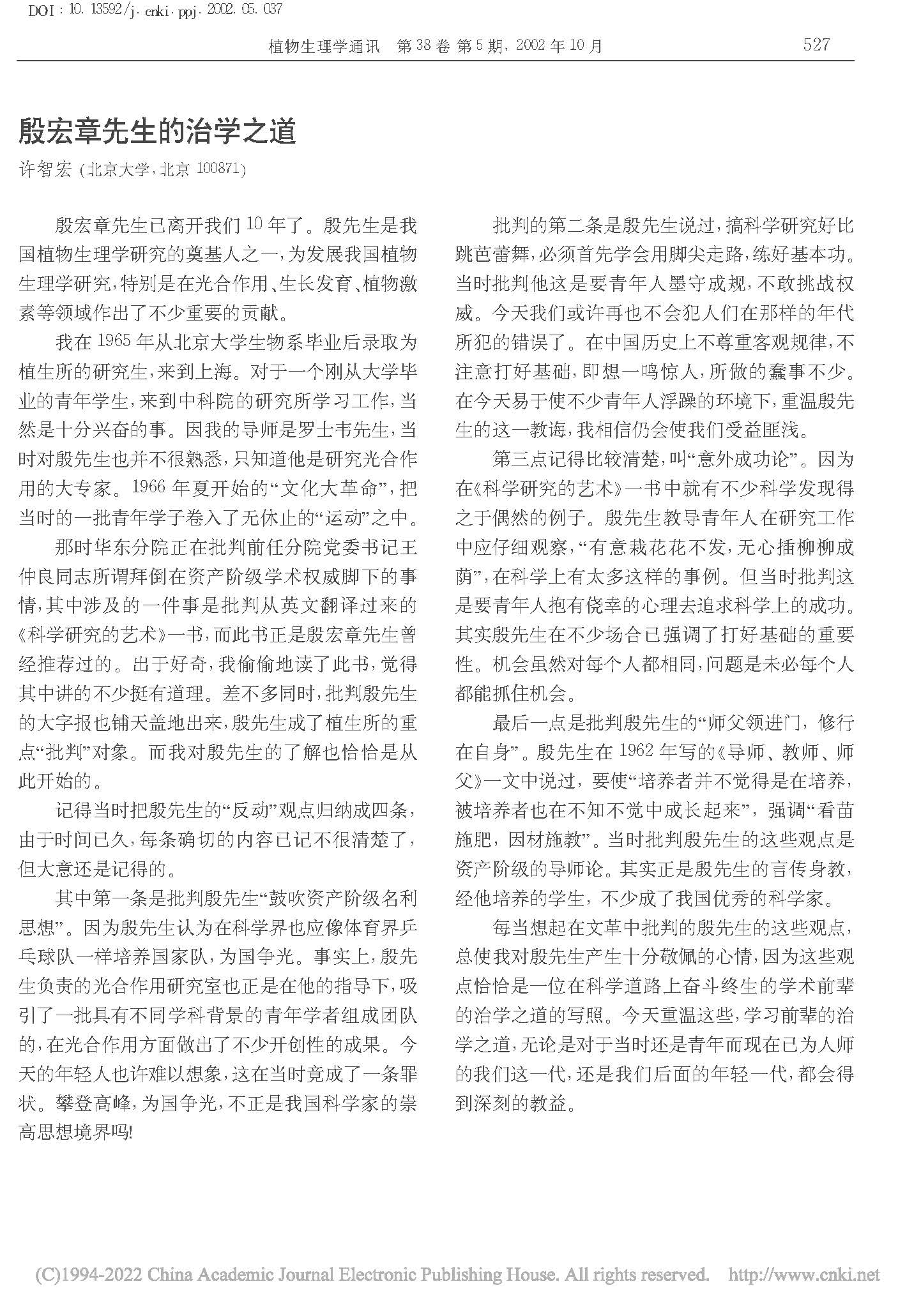 发现了对植物突然改变光强、光质时,光合作用也发生瞬间变化,为表明光合作用有两个光化学反应系统的先驱,参加领导了抗菌素的生产和研究;1959年创建了我国第一个光合作用实验室,在光合作用磷酸化的机理,尤其是其中高能中间态的存在和性质方面,取得了重要进展;利用自己发明的组织化学方法,弄清了磷酸化酶在植物器官和组织中的分布,又证明植物体内存在磷酸化酶,而光照下由糖变淀粉的过程是与磷酸化有关的。