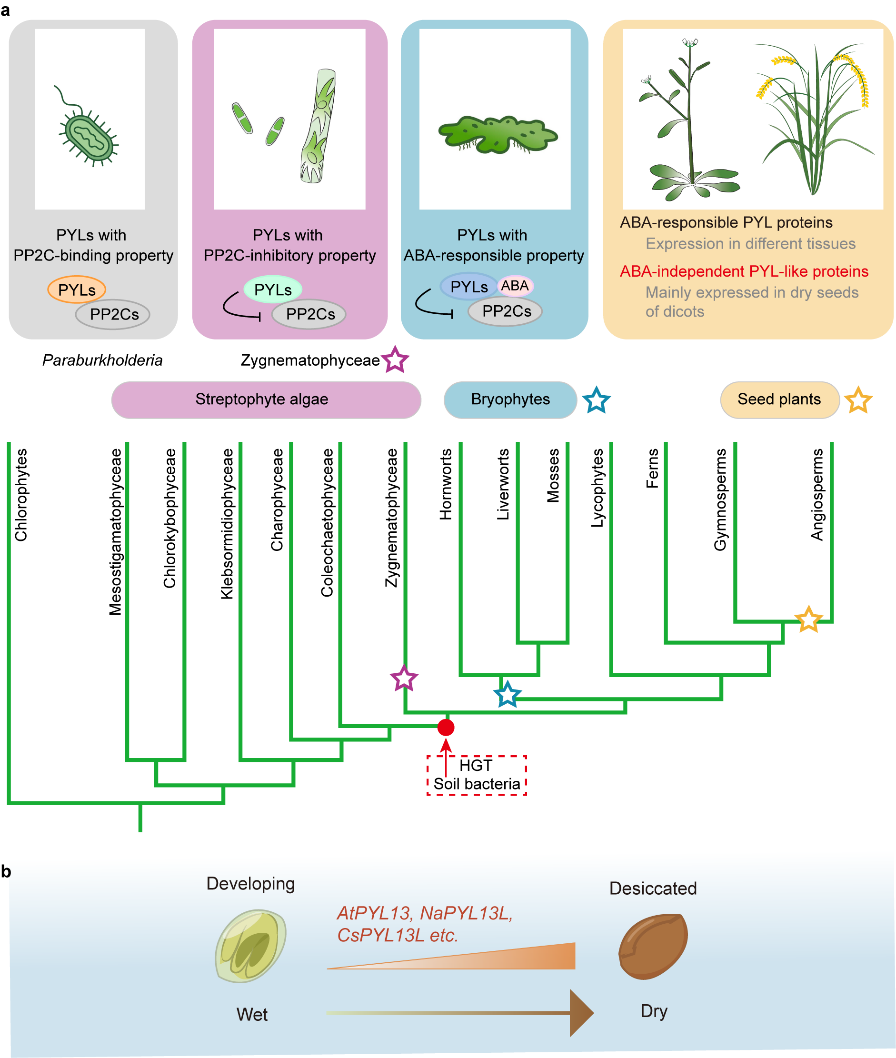 赵杨研究组揭示ABA非依赖型PYL的细菌起源及其在陆生植物中的功能延续