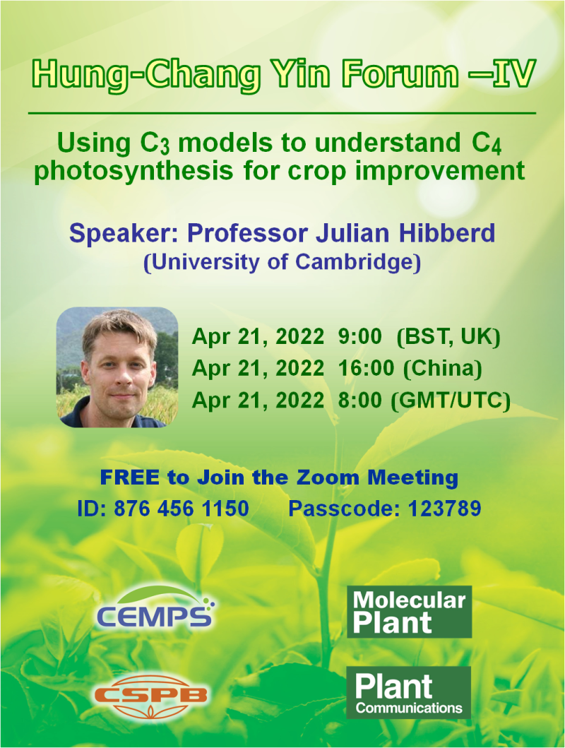 殷宏章论坛--Using C3 models to understand C4 photosynthesis for crop improvement