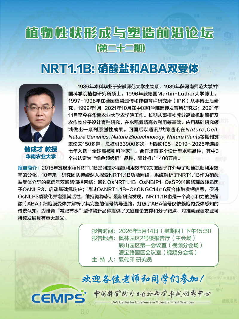 植物性状形成与塑造前沿论坛(第二十二期)--NRT1.1B: 硝酸盐和ABA双受体