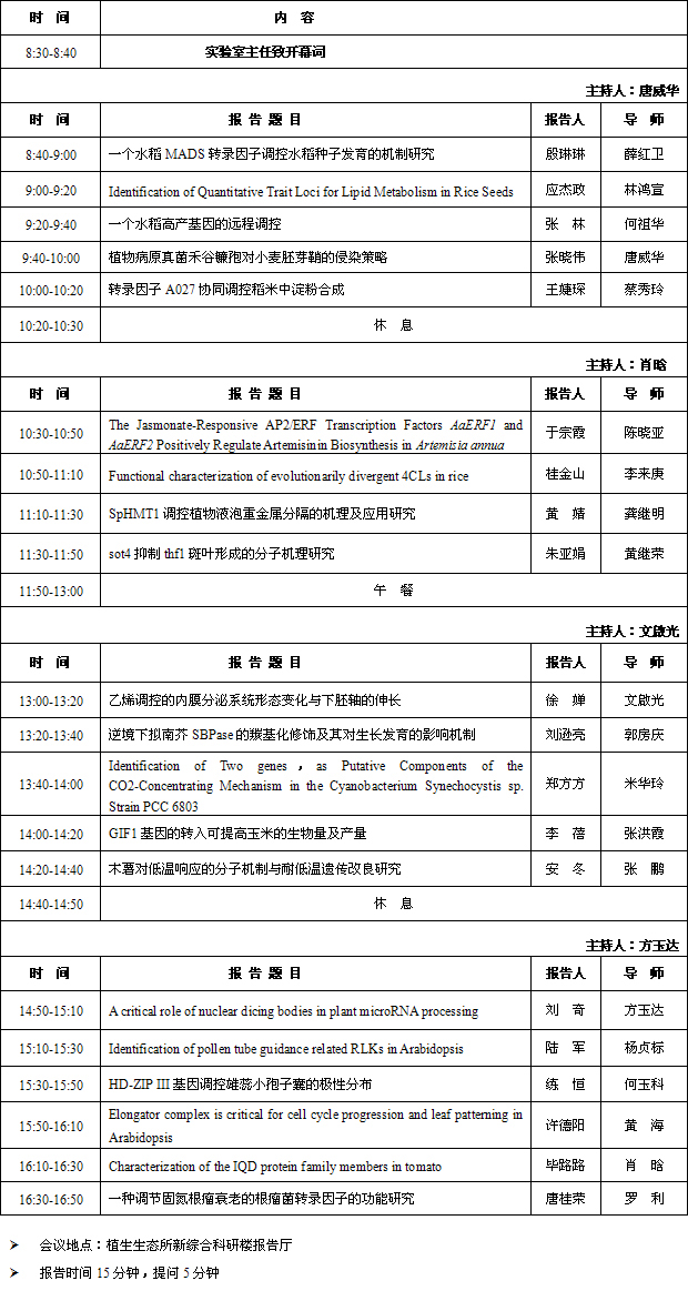 2011年度植物分子遗传国家重点实验室年终总结会议(会议日程)
