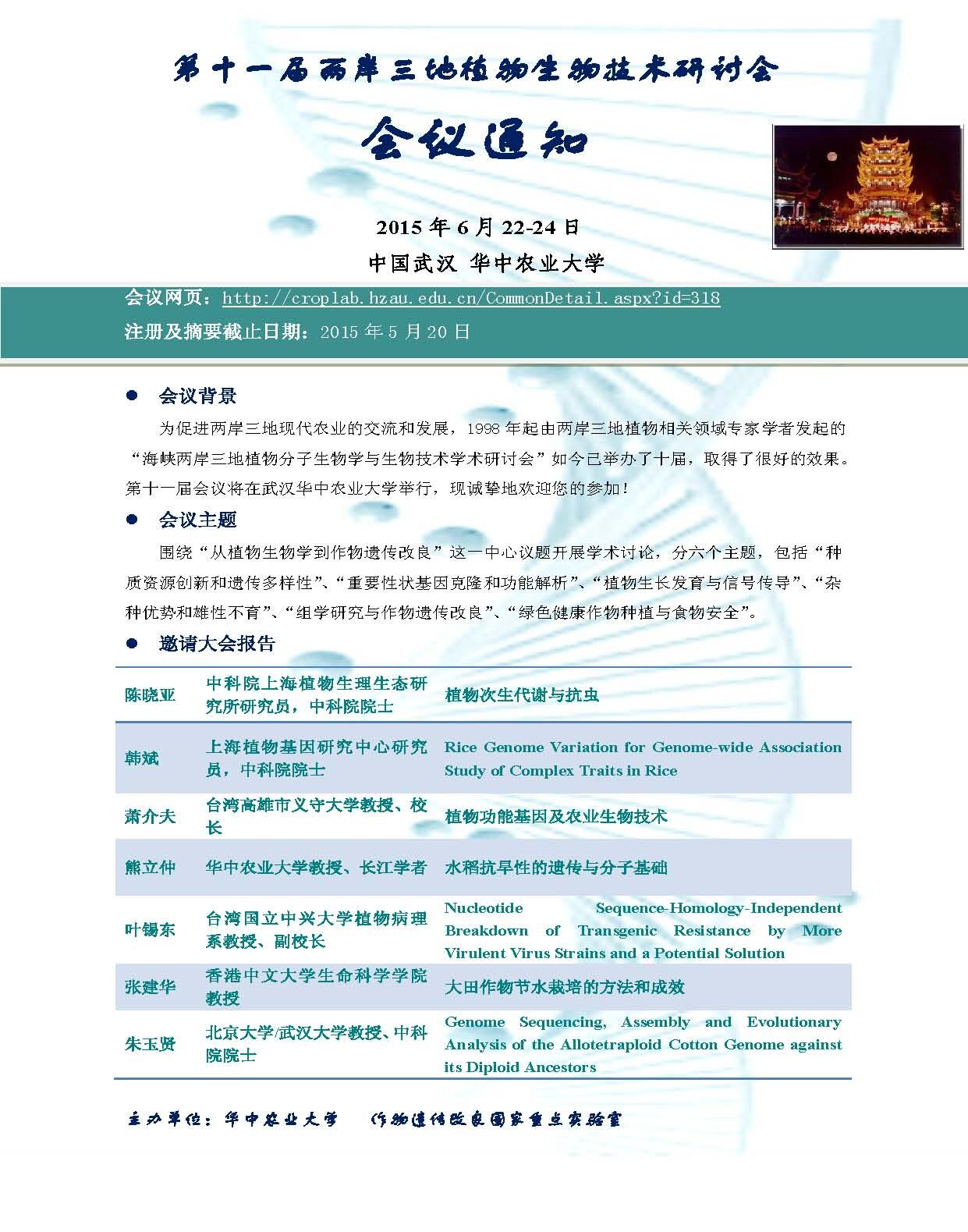 第十一届两岸三地植物生物技术研讨会会议通知