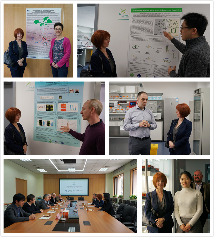 座谈会后,Carole Mundel教授参观了CEPAMS上海分中心实验室并听取了四个中英最新合作项目的介绍。自2014年以来,CEPAMS中心共资助了22个中英合作研究项目,此次启动的四个项目均由最新加入CEPAMS中心的中方研究组与英方JIC研究组合作主持,其中两个研究项目聚焦植物与微生物互作与作物产量之间的关系;另外两个项目旨在探讨中国传统医学中一些药用植物中抗癌小分子化合物的生物合成以及植物对非生物胁迫(如热和干旱)的分子反应。
