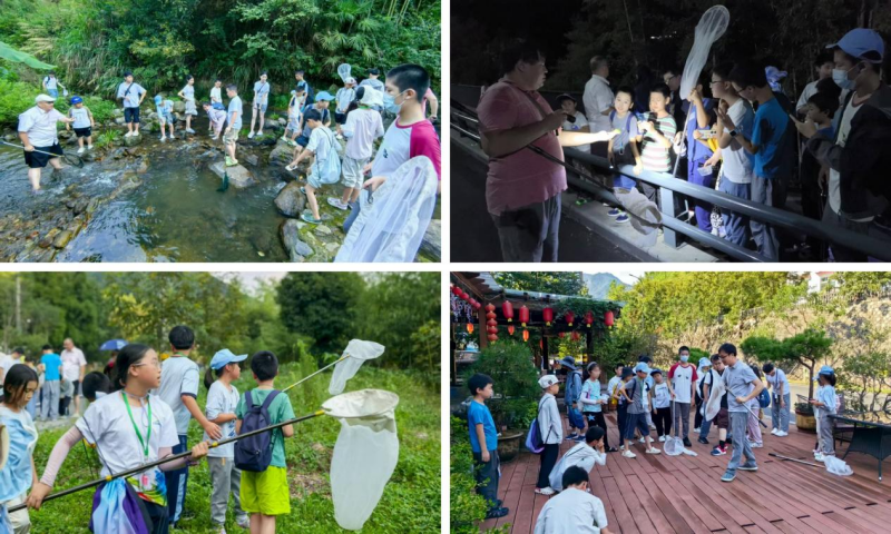 作为本次科学营亮点环节,天目山昆虫研学专场于8月19日至21日举行,中心的24名小朋友在昆虫博物馆老师们的专业带领下深入天目山,开展沉浸式自然教育。孩子们夜游山林观赏萤火虫、架设灯诱设备观察昆虫、探访“大树王”、辨识各种特色植物,在大自然里近距离观察昆虫,在山林小溪间捕捉美好,体验了一堂生动而难忘的户外生物课。